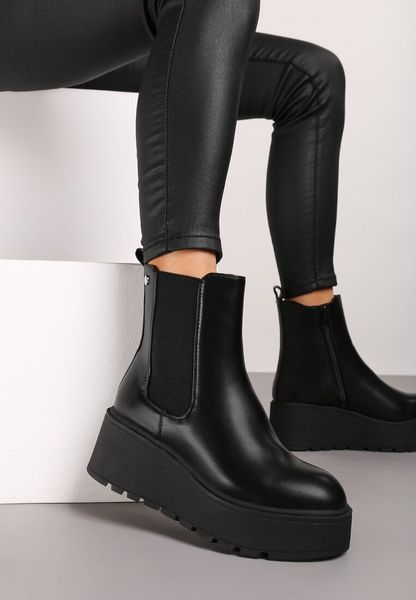 Czarne Botki Sztyblety na Platformie i Koturnie z Gumką Riaella