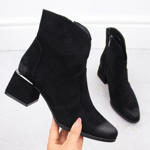 Botki damskie zamszowe na obcasie czarne Potocki 12422