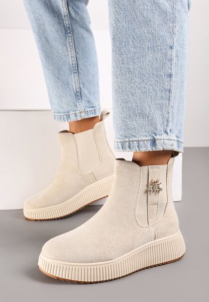 Beżowe Botki Sztyblety na Platformie z Metalowym Detalem przy Cholewce Danellia