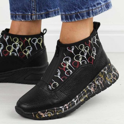 Czarne skórzane botki damskie na koturnie T.Sokolski Z24-349