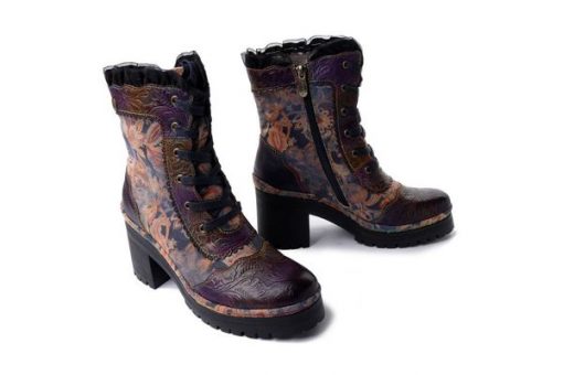 Botki/trzewiki damskie. Elastyczna, ażurowa cholewka. Ocieplone polarem. Miękka, skórzana wkładka. Podwójne zapięcie, zamek plus sznurowadła. Wygodny obcas typu klocek.