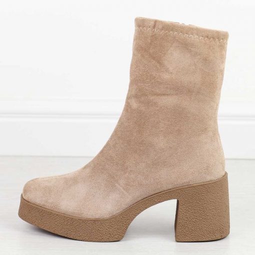 Beżowe przejściowe botki damskie na obcasie S.Barski 739