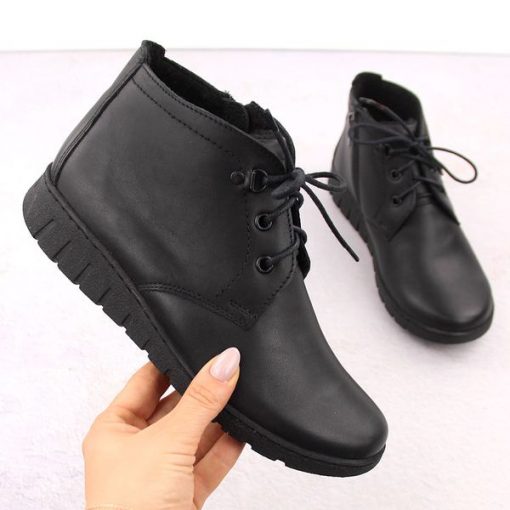 Botki skórzane damskie ocieplane na podwyższeniu czarne Helios 501