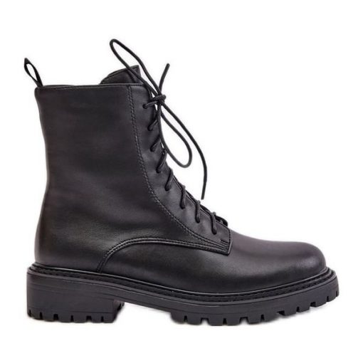 Skórzane Botki Workery Ocieplane Na Zamek Czarne Elosie