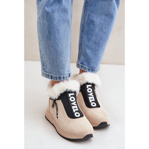 Sneakersy Botki Damskie Z Futerkiem Beżowe beżowy