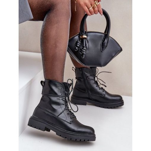 Ocieplane Botki Z Przypinkami Na Sznurowaniu Czarne