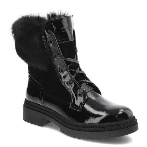 Czarne Botki Pollonus Ocieplane Skórzane Buty Damskie