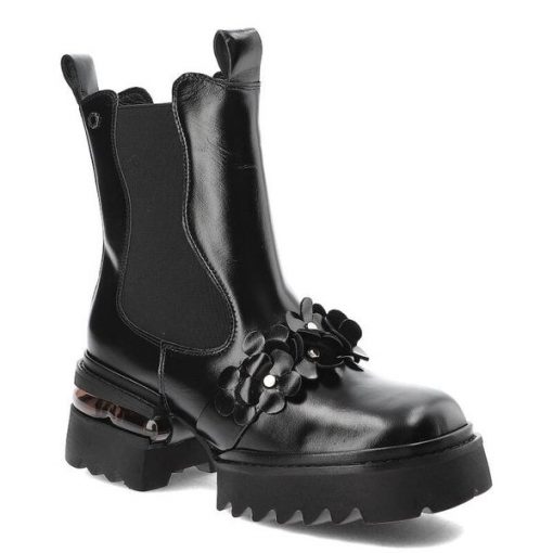 Czarne botki TUFFONI – 1223021LB Black to pełen elegancji fason, czerpiący inspirację od włoskich projektantów. Obłędna cholewka została wytworzona ze skóry naturalnej. Nietuzinkowy wykrój wykonano z dbałością o detale, odpowiadając na wymagania nowoczesnych kobiet. Wkładka i wnętrze z futerka syntetycznego dopasowują się do tęgości stopy, dzięki czemu skutecznie uszczelniają modną kompozycję. Damskie botki TUFFONI – 1223021LB Black
