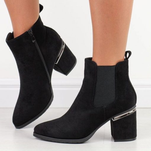 Czarne zimowe zamszowe botki damskie na obcasie Vinceza 16445