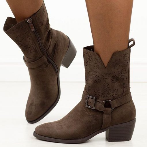 Brązowe zamszowe wyższe botki damskieto idealny wybór na chłodną jesień oraz zimę, łączący elegancję z wygodą. Cholewka wykonana z wysokiej jakości materiału zamszopodobnego została ozdobiona stylową klamerką oraz subtelnymi ażurowymi wycięciami w górnej części, które dodają obuwiu wyjątkowego charakteru. Buty są praktyczne i wygodne dzięki zapięciu na suwak, a klasyczny migdałowy nosek wysmukla stopę. Dolna część […]