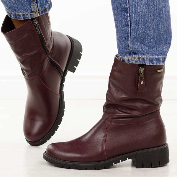 Bordowe wysokie skórzane Polskie botki damskie zimowe na traperze Gregors 793 Gruby Spód