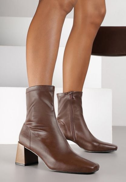 Brązowe Botki Vices na Stożkowym Obcasie z Dopasowaną Cholewką Giosella