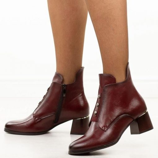 Bordowe botki damskie na obcasie Potocki 12667