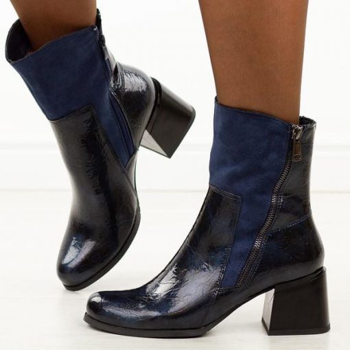 Niebieskie botki damskie na obcasieto idealny wybór na chłodną jesień oraz zimę, łączący elegancję i wygodę w codziennym użytkowaniu. Cholewka wykonana została z wysokiej jakości materiału skóropodobnego lakierowanego, a dodatkowa wstawka z materiału zamszopodobnego w kolorze cholewki oraz metaliczny ozdobny zamek w bocznej części cholewki nadają obuwiu wyjątkowego charakteru i stylowego wyglądu. Wyższa cholewka zapewnia ochronę przed […]