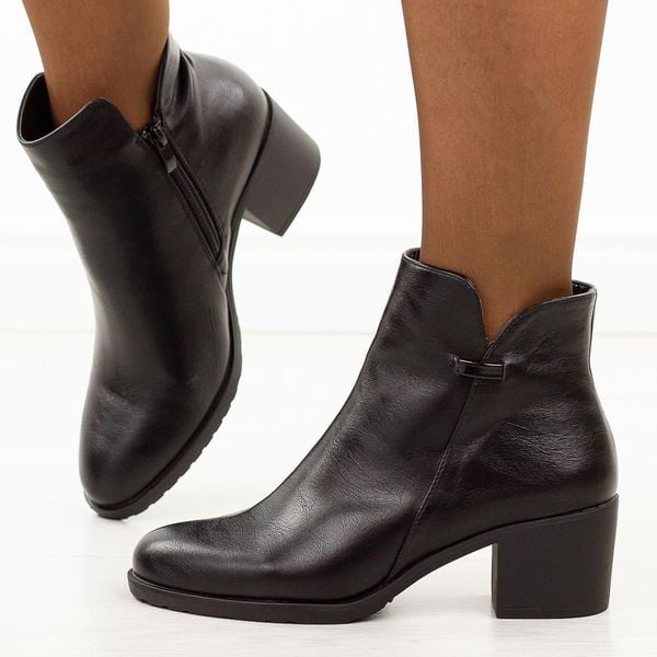 Czarne pu botki damskie na obcasie M.Daszyński Sa128-61
