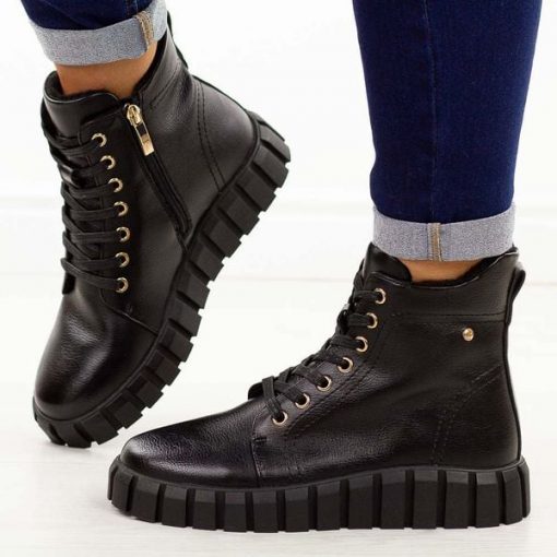 Czarne botki damskie na chłodną jesień oraz zimę to propozycja dla kobiet, które cenią sobie wygodę, trwałość i modny wygląd w jednym. Stylowa cholewka wykonana z materiału skóropodobnego prezentuje się elegancko i nowocześnie, a praktyczne zapięcie na suwak oraz sznurowanie pozwala idealnie dopasować obuwie do stopy. Klasyczny okrągły nosek sprawia, że buty są komfortowe nawet […]