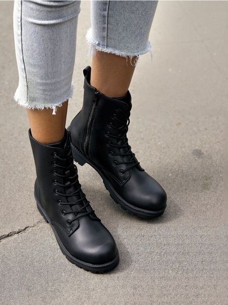 Sznurowane botki za kostkę z imitacji skóry – czarny
