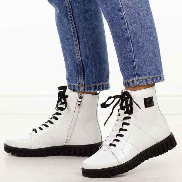 Białe lakierowane skórzane botki damskieto eleganckie i funkcjonalne obuwie stworzone na chłodną jesień oraz zimę. Cholewka wykonana została z wysokiej jakości skóry naturalnej lakierowanej, która nadaje butom wyjątkowego blasku i nowoczesnego charakteru. Dodatkowym atutem jest subtelna metaliczna ozdoba, podkreślająca ich modny design. Botki są zapinane na suwak oraz wyposażone w sznurowanie, co pozwala na doskonałe […]
