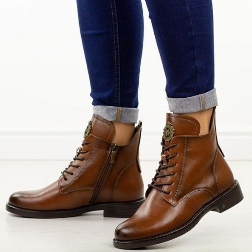 Brązowe botki damskie na płaskim obcasieto idealny wybór na chłodną jesień oraz zimę, łączący styl z funkcjonalnością. Cholewka wykonana z matowego materiału podobnego do skóry nadaje butom nowoczesny i elegancki wygląd, a jednocześnie zapewnia trwałość i odporność na warunki pogodowe. Praktyczne zapięcie na suwak oraz sznurowanie pozwalają na idealne dopasowanie buta do nogi, co zwiększa […]