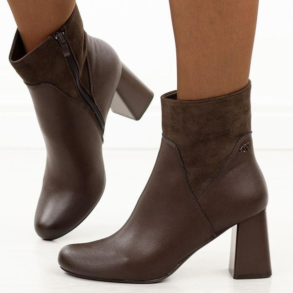 Brązowe skórzane botki damskie na słupku M.Daszyński Ol21-1