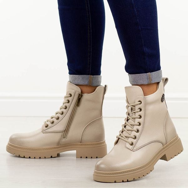 Beżowe botki damskie na traperze Potocki 19324