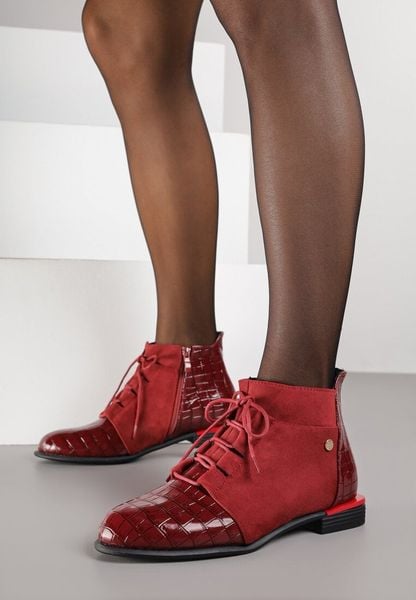 Bordowe Lakierowane Botki Vices z Tłoczeniem Ozvila