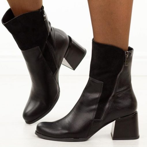 Czarne botki damskie na obcasieto idealny wybór na chłodną jesień oraz zimę, łączący elegancję i wygodę w codziennym użytkowaniu. Cholewka wykonana została z wysokiej jakości materiału skóropodobnego, a dodatkowa wstawka z materiału zamszopodobnego w kolorze cholewki oraz metaliczny ozdobny zamek w bocznej części cholewki nadają obuwiu wyjątkowego charakteru i stylowego wyglądu. Wyższa cholewka zapewnia ochronę przed chłodem, […]