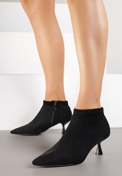 Czarne Botki z Imitacji Zamszu na Obcasie Typu Kaczuszka Rilurelle