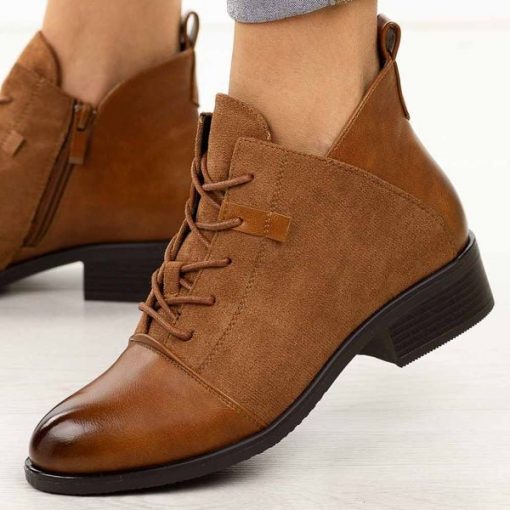 Camelowe botki damskie na płaskim obcasieto idealny wybór na chłodną jesień i zimę, łączący styl i komfort. Wykonane z połączenia materiału skóropodobnego i zamszopodobnego, te botki wyróżniają się eleganckim designem i trwałością. Zapięcie na suwak oraz dodatkowe sznurowanie zapewniają idealne dopasowanie do stopy, a migdałowy nosek dodaje subtelnego, kobiecego akcentu. Wnętrze botków oraz wkładka są ocieplone […]