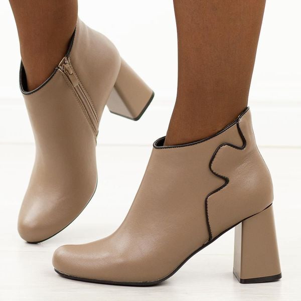 Beżowe skórzane botki damskie na słupku Jezzi Ol21-2