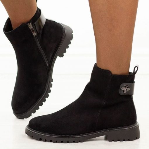 Czarne zamszowe botki damskie na traperzeto połączenie wygody, nowoczesnego designu i solidnego wykonania. Wykonane z wysokiej jakości materiału zamszopodobnego, gwarantują trwałość i odporność na codzienne użytkowanie. Cholewka ozdobiona metalicznym akcentem w kształcie owada nadaje butom wyjątkowego, modnego charakteru. Botki są zapinane na suwak, co ułatwia zakładanie i zdejmowanie. Okrągły nosek zapewnia komfort podczas noszenia, a wnętrze […]