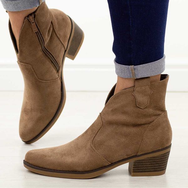 Taupe zamszowe kowbojki, botki damskie M.Daszyński 2382-7