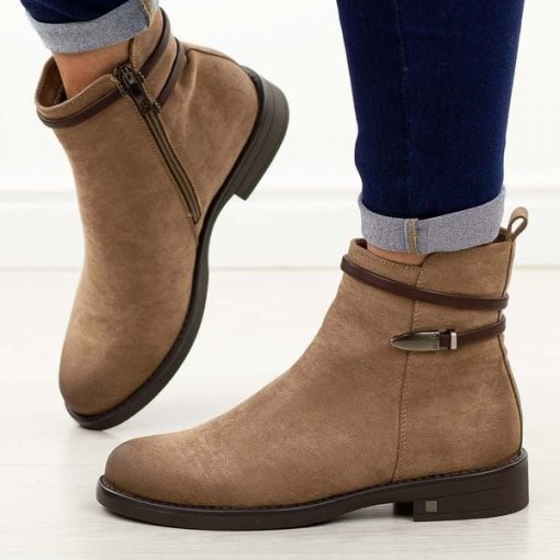Beżowe płaskie botki damskieto praktyczne i eleganckie obuwie idealne na chłodną jesień oraz zimę. Wykonane z wysokiej jakości materiału zamszopodobnego, prezentują się stylowo i ponadczasowo. Cholewka ozdobiona subtelnym detalem w górnej części nadaje im delikatnej elegancji. Zapinane na suwak, gwarantują wygodę zakładania i zdejmowania, a okrągły nosek zapewnia komfort noszenia nawet przez wiele godzin. Wnętrze botków […]