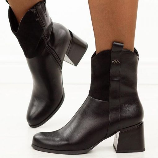Czarne botki damskie na obcasie M.Daszyński Sa269-2