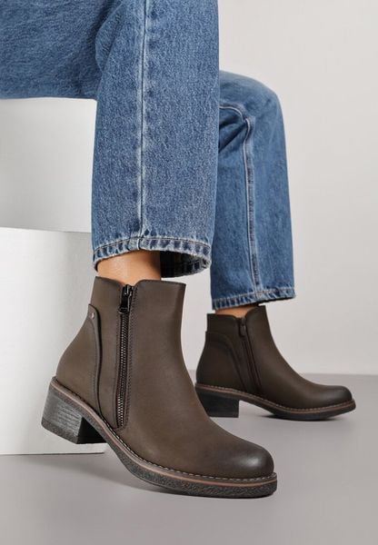 Brązowe Botki do Kostki Zdobione Suwakiem przy Cholewce Ilosela
