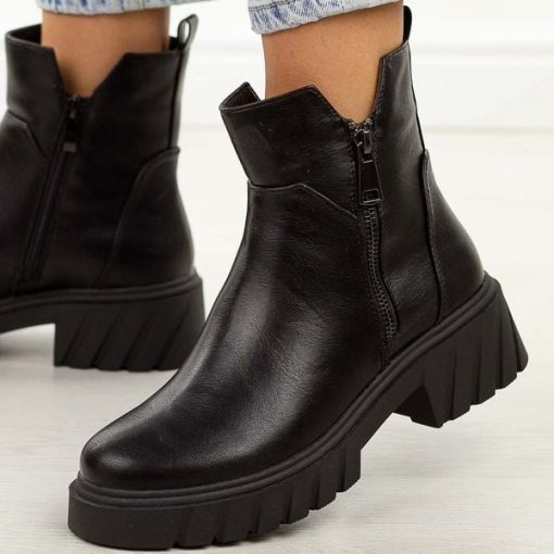 Czarne botki damskieto praktyczne i modne obuwie idealne na chłodną jesień oraz zimę. Cholewka wykonana została z wysokiej jakości materiału skóropodobnego, który nadaje butom eleganckiego charakteru i sprawia, że są łatwe w pielęgnacji. Dodatkowym akcentem ozdobnym jest ozdobny suwak na bocznej części cholewki, który podkreśla nowoczesny design. Botki są zapinane na suwak, co zapewnia wygodę […]