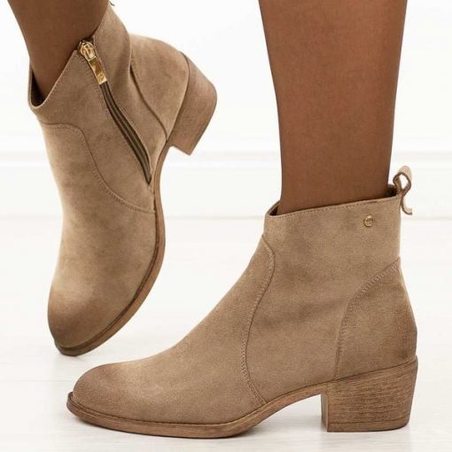 Beżowe zamszowe botki damskieto idealny wybór na chłodną jesień oraz zimę dla kobiet ceniących połączenie stylu, wygody i elegancji. Cholewka wykonana została z wysokiej jakości materiału zamszopodobnego, który prezentuje się niezwykle modnie i ponadczasowo. Model jest zapinany na praktyczny suwak, co ułatwia zakładanie i zdejmowanie obuwia, a jednocześnie zapewnia idealne dopasowanie do stopy. Wnętrze botków ocieplone […]