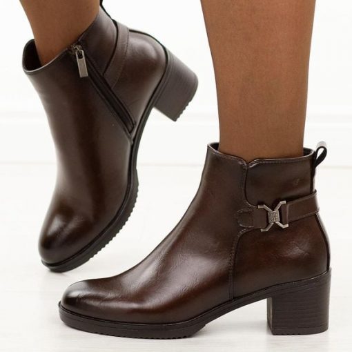 Brązowy skórzane botki damskie na obcasie T.Sokolski Z25-218