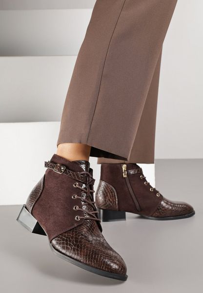 Brązowe Botki Vices Zdobione Imitacją Skóry Węża i Klamerką Gelisa