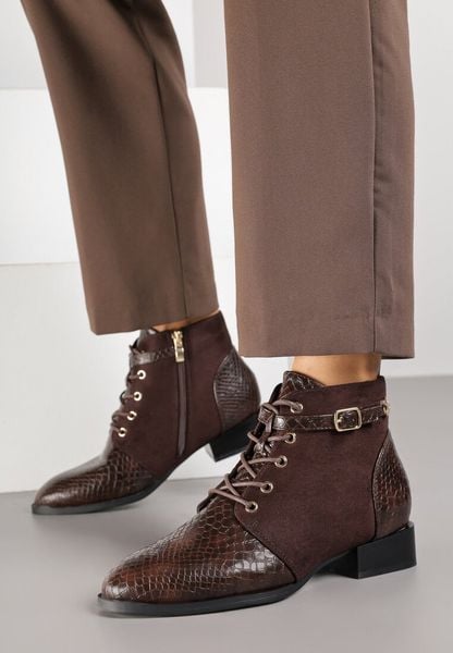 Brązowe Botki Vices ze Wstawkami Imitującymi Skórę Węża i Sprzączką Gelrina