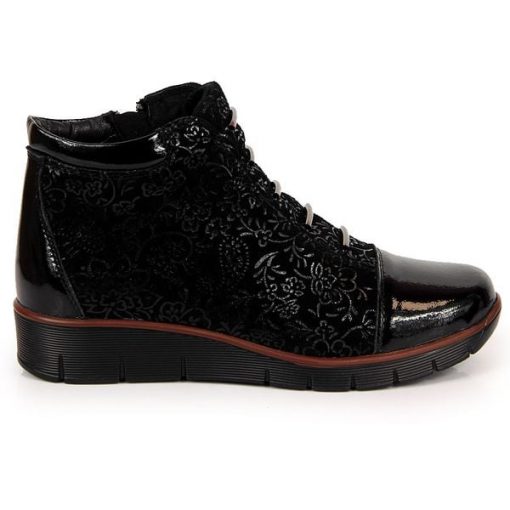 Skórzane botki damskie ocieplane z printem czarne Filippo DBT3179