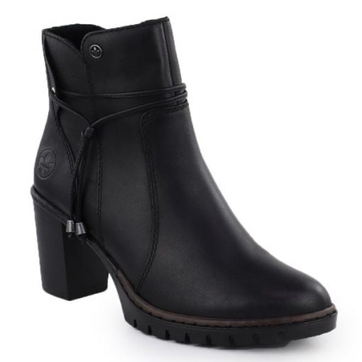 Skórzane botki na słupku czarne Rieker Y2567-00