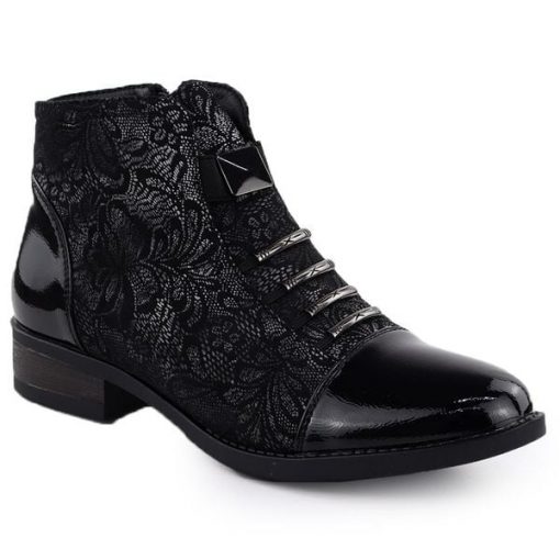 Botki damskie z ozdobami w kwiaty czarne Sabatina DM25-08