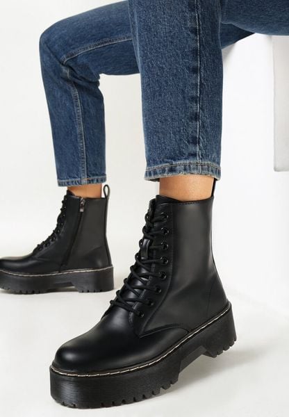 Czarne Botki Workery na Platformie Phorique