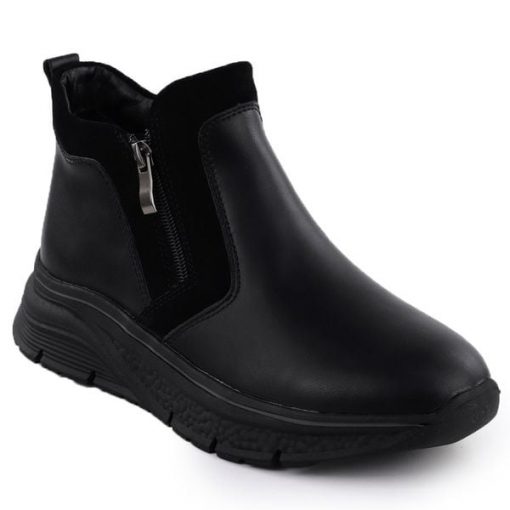 Skórzane botki damskie na zamek ocieplane czarne Filippo 7292