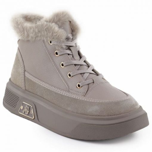 Skórzane botki na platformie z futerkiem beżowe Cambell 25-19352