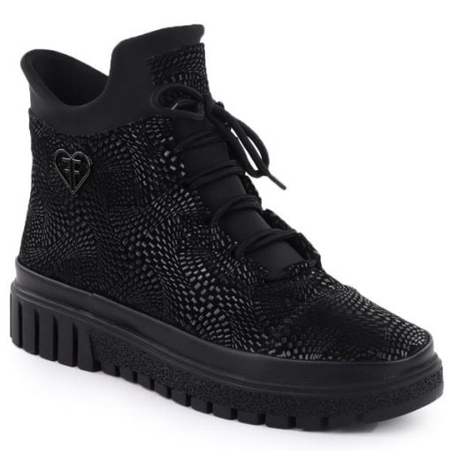 Skórzane botki damskie połyskujące czarne Filippo DBT7302