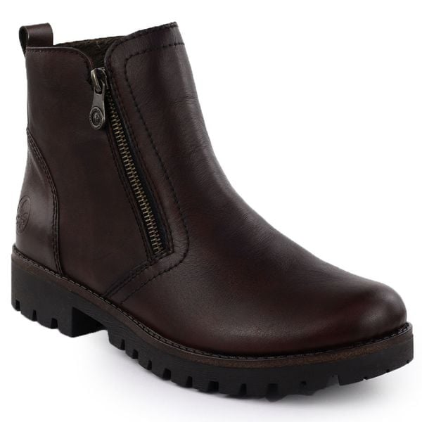 Skórzane botki damskie na suwak brązowe Rieker 78556-27