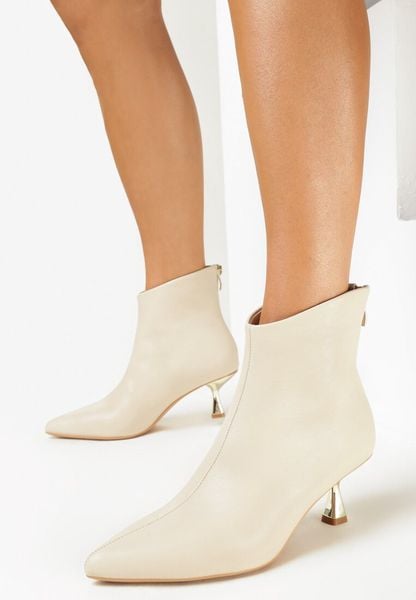 Beżowe Botki na Metalicznym Obcasie Kaczuszka Lechana