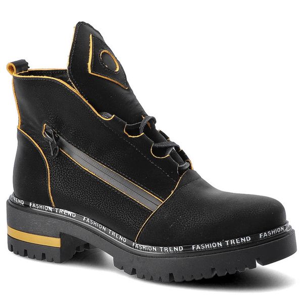 Botki damskie Lemar, sznurowany fason z bocznym zamkiem podwyższona cholewka dekoracyjne kontrastowe obszycia, żółte floter, 60272